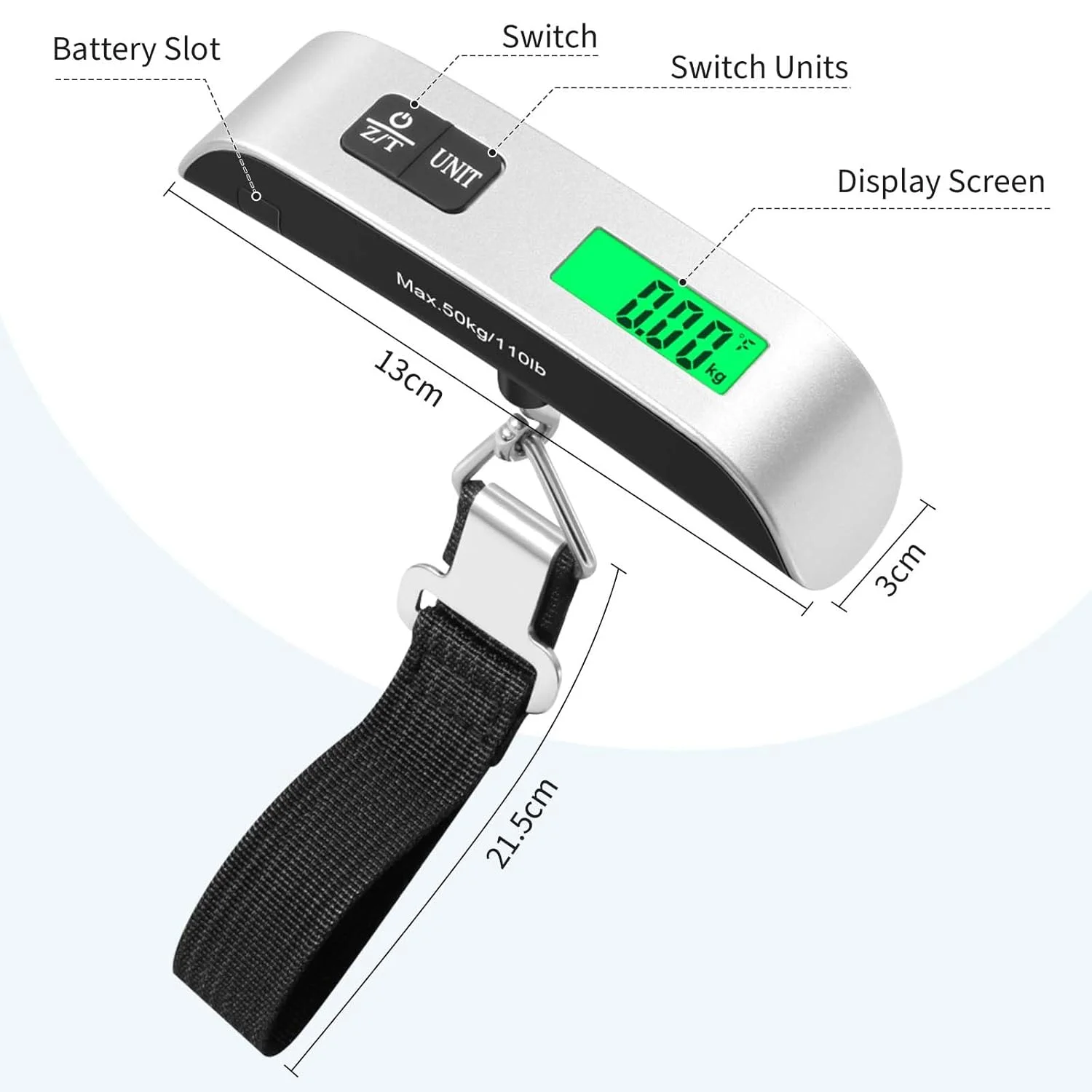 Capacity: Measures items up to 110 lbs (50 kg) with 0.2 lb / 0.1 kg precision.